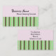 Um design moderno clássico de listras em chocolate, verde, rosa mole e branco. Uma tendência parece acentuar muitos tipos de negócios''. Limpeza de casas, design de interiores, decoração de casas, cuidado com crianças, designer gráfico e muitos outros se encaixariam nesta design. Personalize com todas as suas informações.
