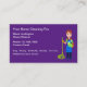 Serviços de limpeza de casas cartões de visitas design em um design de entretenimento com uma moça profissional de limpeza com suprimentos em segundo plano e uma cor de fundo roxa surpreendentemente bonita fazem disso um cartões de visitas memorável único que você pode distribuir aos clientes. Concebidos para uma empregada doméstica, empregada doméstica, serviços de limpeza residencial e muito mais.