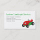 Um cartão de visita com um trator de corte vermelho para os que trabalham na paisagia, como aparas, manutenção, infestantes, fertilizantes, controlo de pragas, assistência à paisagem, design de paisagens e jardinagem. Personalize facilmente com seus detalhes comerciais.