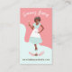 Cartão de visita de padaria doce e retrógrada com uma bela sorridente e amigável mulher vestindo um vestido e avental vintage com uma mão na anca e a outra segurando um uísque. Personalize com o seu nome comercial e Web site. O reverso apresenta o belo retrato vintage Lady junto com ferramentas de padaria divertidas e comida. Personalize com seu nome, cargo, informações de contato e identificador social. Todas as ilustrações são obras de arte originais desenhadas à mão por Moodthology Papery.