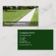 Cartões de visitas de jardim criados com uma imagem de gramados de bairro perfeita para temas de cartão de visita relacionados a paisagens ou manutenção de terrenos.