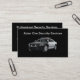 Cartões de visitas profissionais de segurança com imagem de um carro de patrulha de segurança inspirado pela polícia na frente com o nome de sua empresa. Personalize seus detalhes comerciais e serviços listados no lado das informações para que isso funcione para sua empresa. Projetado para uma patrulha de segurança, guardas de segurança ou segurança para aluguer.