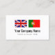Serviços de tradução modelo de cartão de negócios de tradutor português inglês. Design de cartões de visita personalizados com o logotipo da companhia de bandeira britânica Jack e Portugal. Cartas simples com tipografia moderna para nome e slogan. Cartões profissionais para serviços de tradução, professores de línguas, educação, indústria de viagens, produtos, serviços de tratamento de vistos, serviços de tradutores, direito internacional, agência de viagem, transportes, exportação de importação, empresa de tradução de línguas, empresa comercial, freelancer, etc. Disponível em diferentes tamanhos, espessura de papel e forma recortada de canto redondo. Também disponível para outros idiomas. Bandeira de Portugal e da Inglaterra, Reino Unido, do Excelente da Grã-Bretanha. Carregue as bandeiras do seu próprio país, opcionalmente. Obtenha mais ideias criativas e inspiração livre em nosso compro único.