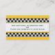 " Dos " cartões de visitas/"cartões de visitas" com modelos inteiramente customizáveis. DESIGN: Ajuste contra um fundo do amarelo da mostarda, seja uma listra preto e branco do bloco do verificador e um sinal do telhado do táxi em que há uns modelos customizáveis do texto para seu fraseio personalizado. PERSONALIZE-O - adicione-o possuem o fraseio, mudam o estilo/cor e o tamanho da pia batismal, e movem coisas ao redor para fazê-la original. Use simplesmente "personalizam-no" botão. IDEAL PARA: Todo o transporte do táxi/negócios conduzidos chauffeur, esse trabalho 24 horas um o dia, 7 dias por semana, e estão na chamada para pagar clientes. Adicione a informação sobre seus taxas/custo da bagagem, cargas por o quilômetro ou a milha viajou. COPYRIGHT: © de madeira do pisco de peito vermelho original do design - todos os direitos reservados. ENDEREÇO DA LOJA: http://www.zazzle.com/corporateworld*