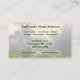 Esta cartão de visita anuncia uma empresa de serviços de lagoas que faz planejamento de lagoas, design, construção, manutenção, limpeza e gerenciamento. Ele apresenta uma cena de paz e serenidade... uma manhã de verão cedo com neblina e ascensão de neblina sobre o lago. O céu distante, as árvores pálidas e a folhagem verde refletem-se na água. A imagem é repetida no verso. Todo o texto pode ser personalizado para se adequar à sua situação individual.