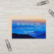 Cartão de visita de serviços profissionais com a imagem de montagem azul como fundo para texto em dois locais. Texto central, caixa dentro, em negrito, cor amarelo pálido para nome, nome comercial, ocupação e/ou serviços oferecidos. Incluir outra linha abaixo para descrição curta ou informações de contato. Adicione mais texto ao reverso usando o modelo fornecido ou remova o texto para solicitar o vazio. Alterar o tamanho pode alterar o design, e as placas serão impressão como você vê.