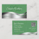 Mostre elegância e inovação com este belo modelo de cartão de negócios. A design apresenta uma decoração prateada ondulada e brilhante com decoração brilhante verde fina, num fundo verde de shamrock. Personalize facilmente este cartão de visita para a sua marca, as suas iniciais e o seu código qr. Tudo que você vê é uma folha de prata falsa e uma fumaça falsa, mas uma design de impressão de grande qualidade. ♡ desejar-lhe muito prazer com este ponto e boa sorte para o seu trabalho. ♡ pelo SEU FAVORITO - designs :-) Fornecimentos comerciais modernos e profissionais. ♡ www.zazzle.com/store/your_favorite ♡ www.zazzle.com/store/favorite_markeplies ♡