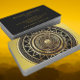 Mandala geométrica de energia poderosa em preto brilhante e ouro gradiente com um símbolo Om no centro. Excelente para as empresas e ocupação no âmbito da saúde e da beleza, spa, terapêutica, clarividente, ioga, reiki, massagem e tudo dentro da nova era e holística e também para as artes, moda, etc. Totalmente personalizável.