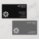 Um na moda claro e um modelo de cartão de negócios atraente com uma flor ou símbolo estelar simples, mas atenciosa, do estilo art deco. Detalhes principais da empresa na frente, com nome e contato pessoal na parte traseira, em um fundo de cinza com uma versão branca do símbolo.