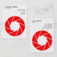 Um modelo de cartão de negócios com um símbolo de abertura em negrito. Nome da empresa, tipo de negócio e endereço na frente com nome, cargo, telefonia, web e endereços de e-mail no verso, com o mesmo layout.