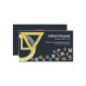 No verso, num cobrir azul, o logotipo "pi" de ouro está no topo, seguido do seu prestígio, dos seus dados de contato e de uma opção de slogan para divulgar os seus serviços.