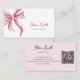Cartão De Visita Simple Elegant Typography Pink Bow QR Code