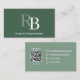 Cartão De Visita Simple Green Monogram QR Code | Connect with Me