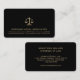 Apresente-se profissionalmente com esses cartões de visitas negros mostrando um logotipo em escala de justiça em ouro, feito sob medida para firmas de advocacia e especialistas que buscam uma impressão duradoura.