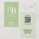 Cartão De Visita Simple Monogram QR Code Green | Connect with Me