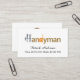 Um cobrir branco apresenta uma placa de "homem de mão". A letra-H é substituída por ferramentas enquanto a letra-D, a fita de medição. Logo abaixo, está seu nome prestigioso com os detalhes de contato perto da base do cartão. No verso, no topo está um logotipo dourado "serra doméstica" que você pode usar seguido do seu nome prestigioso, dos detalhes de contato e da opção de slogan para divulgar seus serviços. Este cartão é para ser usado por um homem de mão. #handyman #construtionhandyman #homerepair #homebuilder #homeconstruction #building #builder #remodeling #manutenção #handymantools #zazzlemade