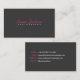 Um cartão de visita simples e elegante do design para fotógrafo. Dianteiro cinzento e traseiro escuros com texto customizável magenta e branco.