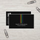 Cartão de visita simples de programador de computador que consiste em um fundo escuro com feixes de luz fluindo em direção ao seu nome e título. Você pode personalizar este cartão de visita do programador de computador com seu nome e detalhes.