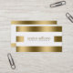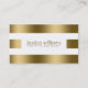 Tons de ouro simples e elegantes listram o padrão sobre fundo branco personalizável. Bom sentimento moderno com 3 grandes listras na frente e as listras de deus nas costas. Modelo de cartão de negócios totalmente personalizável de dois lados.