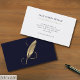 Apresente as suas credenciais com confiança nos nossos Cartões de visitas Simples Elegantes Dourados Quill. Uma frente limpa simples com espaço para seu nome, título e informações de contato apresentadas em tipografia elegante em uma frente branca limpa. O verso apresenta uma luxuosa pena de ouro num pano de fundo de marinho, que dá um tom profissional que oferece uma promessa tácita de qualidade e discrição.