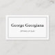 Este cartão de visita profissional, simples e minimalista apresenta uma fronteira tripla, e poderia funcionar bem para alguém de uma profissão conservadora como a lei, talvez trabalhando como advogado, assistente jurídico ou juiz. Os detalhes na parte frontal e traseira do cartão podem ser personalizados.
