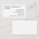 Este simples e mínimo design de cartão de visita apresenta um nome profissional, um nome comercial, um título de trabalho e informações de contato que podem ser personalizadas. Também tem uma fronteira dupla com uma linha tracejada no meio. Cartões de visitas como estes podem ser utilizados por um profissional como um "barrister", um advogado ou um especialista em direito comercial.