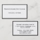 Cartão de visita simples e profissional com borda preta (você pode solicitar este design em cartões dourados ou prateados ou mudar a cor de fundo para o que quiser). Fácil de personalizar com seus detalhes. Cartão de visita perfeito para profissionais em áreas financeiras, imobiliárias, jurídicas, de gestão ou de profissões oficiais.