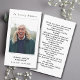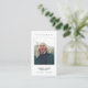 Cartão de visita Dimensões: 3,5" x 2,0" Este simples cartão de oração memorial pode ser dado como guardiã de uma Celebração da Vida ou serviço funerário ou enviado como homenagem especial a quem não pôde participar. Personalize este cartão com uma foto favorita, o nome do seu amado, datas e a sua escolha de oração ou poema. Fácil de personalizar.