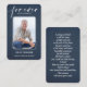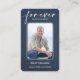 Um simples cartão memorial apresenta "Para sempre nos nossos corações" com a fotografia, o nome e as datas de morte, e um poema ou oração no verso é impresso num padrão de denim azul. Lindo por um tesouro, serviços funerários e celebração de memorial de vida.