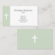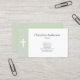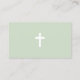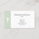 Um cartão de visita simples e elegante que inclui um fundo verde à esquerda com uma cruz branca. Uma maneira muito sóbria de se comunicar para um pastor, uma igreja, uma comunidade cristã, etc.