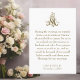 Crie um momento sagrado em sua recepção de casamento com nosso Cartão de Convite de Prece Marian Altar. Esta carta maravilhosamente projetada convida seus convidados a visitar um altar especial da Marian, criado no local para oferecer orações e bênçãos para seu casamento. Com uma mensagem sincera em primeira pessoa, o cartão diz: "Durante a noite, convidamo-lo calorosamente a visitar o nosso altar Marian e a oferecer-nos uma oração enquanto embarcamos nesta viagem como marido e mulher. Suas preces significam tanto para nós, e ficaríamos honrados se você acendesse uma vela e compartilhasse suas bênçãos pelo nosso casamento." Adorado com uma elegante Cruz Mariana de ouro no topo, esta carta não só adiciona um toque espiritual à sua celebração, como também cria uma oportunidade significativa para os convidados participarem da fé e do amor que o unem como casal. Perfeito para casais que procuram incorporar sua fé católica no dia do seu casamento, esta carta é uma bela maneira de promover momentos de oração e aprofundar a experiência de unidade entre seus entes queridos.