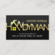 Uma cinza e uma camada preta são demarcadas por uma placa de ouro criativo "HANDYMAN", onde a letra A é feita de um martelo para formar um telhado. Por cima, está o seu prestigioso nome em dourado falso com a opção de slogan e os detalhes de contato perto da base. ; Você pode mudar os comentários de legenda para o slogan para adequá-los às suas necessidades de serviço. No verso, em uma cobrir de cinza, o logotipo do martelo dourado que você pode usar está no topo. Seguem-se o seu nome prestigiado, os contatos e uma opção de slogan para divulgar seus serviços. Um design de excelente para temas de mão de obra e de construção. #ZazzleMade