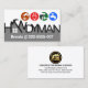 O cobrir apresenta um cartaz criativo "HANDYMAN" onde a letra A é feita de um martelo para formar um telhado. Exatamente acima está uma série de ferramentas coloridas de mão-cheia que podem representar alguns dos serviços que podem ser oferecidos, por exemplo, a fita de medição de furos pode representar a carpintaria de reparos caseiros, a tomada elétrica para obras elétricas, pincéis para remodelação de pinturas e a torneira para serviços de canalização. A descrição é deixada ao seu próprio entendimento. Na base do cartão está o seu nome prestigioso e os seus dados de contato. No verso, em um cobrir branco, o logotipo da paisagem dourada que você pode usar está no topo. Seguem-se o nome da empresa e os respectivos contatos. Um design de excelente para o homem a ser usado. #handyman #construcder #contratante #remodelador #empreiteiro #construtor #homerepair #generalcontratante #handymantools #homerepaircontratante #zazzlemade