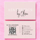 Este moderno cartão de visita estético do skincare apresenta um fundo cor-de-rosa pincelado com um elegante código QR para fácil acesso do cliente às suas mídias sociais ou ao seu website. A design combina uma estética limpa e minimalista com a tipografia profissional, criando um aspecto chique e abordável ideal para a indústria da beleza. Personalize-o com seu nome, título, logotipo e informações de contato para uma impressão elegante e memorável. Perfeito para estéticos, especialistas em cuidados de pele e profissionais de spa que buscam adicionar um toque pessoal e na moda às conexões de clientes.
