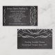 O cartão de visita de aparência do quadro de maletas do conjunto correspondente apresenta o fundo da cinza de carvão escuro com efeito de quadro negro e o escrevendo de desenho manuscrito branco no primeiro plano. Motif de espiral decorativa adiciona um toque de elegância casual. Todos os Designs Copyright © www.CustomInvitesOnline.com