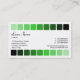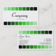 Um modelo de cartão de visita/empresa moderno na moda. Cortados de cima e de baixo com uma fileira de nove quadrados redondos encurralados indo de verde-claro a preto. Dados da empresa na frente com nome e contatos no verso.