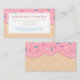 Cartões de visitas do Sorvete Strawberry Waffle Cone desenhados com uma ilustração do sorvete cor-de-rosa de morango sobre um fundo de waffle bege em ambos os lados das placas. Os detalhes do seu compro de sorvetes são personalizados em rosa, bege e azul na frente, em um retângulo branco sobre o design do cone de waffle do sorvete. Eles são um design perfeitamente doce para qualquer compro de sorvete, creme ou sorvete independente.