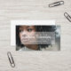 Esses cartões de visitas modernos e elegantes apresentam sua foto pessoal na frente, com uma simples camada branca translúcida que contém seu nome na tenda tipografia de scripts manuscritos brancos. A parte traseira da placa tem bastante espaço para todas as informações de contato em preto-e-branco, assim como vários ícones de mídia social onde você pode adicionar seu nome de usuário. Os ícones podem ser excluídos se não forem necessários. Esses cartões de visitas de fotos com sangramento de cheio são perfeitos para qualquer um em um campo onde a aparência é importante - fotógrafo, modelo, maquiador, cabeleireiro e muito mais.