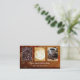 Cartão de visita com as suas próprias fotos personalizadas (opcional) enquadrado por um design floral de ouro marrom.