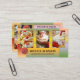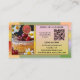 Cartão de visita com imagens de bolos doces e sobremesas enquadradas por um design artístico colorido. Você pode substituir todas as fotos por suas. O modelo de logotipo pode ser substituído por seu próprio (ou excluído se você não precisar dele). O modelo de código QR é fácil de personalizar simplesmente adicionando sua própria URL. Bonita para uma padaria doce ou uma companhia de restauração de sobremesa e personalizável para outras ocasiões.