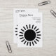 Um modelo de cartão de negócios com símbolo do Sol. Nome da empresa, tipo de negócio e endereço na frente com nome, cargo, telefonia, web e endereços de e-mail no verso, com o mesmo layout.