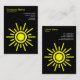 Um modelo de cartão de negócios com símbolo do Sol. Nome da empresa, tipo de negócio e endereço na frente com nome, cargo, telefonia, web e endereços de e-mail no verso, com o mesmo layout.