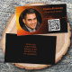 Esta placa profissional apresenta um plano de fundo de aparência preto e laranja com algum texto e marcador de posição Código QR na frente e outros detalhes sobre um plano de fundo preto no verso. Personalize os campos de texto, remova o texto ou personalize-o para selecionar um estilo de fonte, tamanho e cor preferidos. Substitua a foto e o código QR pelo seu. Uma foto quadrada funciona melhor. Use o link de código QR para enviar clientes em potencial para revisões, fotos ou seu site.