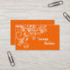 Modernos pântanos florais e modelo de cartão de negócios de laranja, com espirais brancas e linhas pontilhadas com folhas, flores e aves em anéis suspensos sobre fundo laranja tangerino. Esta design bonita e moderna tem um retrato e é perfeita para uso pessoal ou profissional.