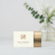 Este cartão de visita do gerenciador de talentos apresenta um elegante plano de fundo dourado no lado direito da placa. Sua letra monográfica aparece em uma letra elegante de script sobre um simples fundo de ouro quadrado. Seu nome e título estão abaixo da letra do monograma, sobre um fundo cor esbranquiçada. Perfeito para entretenimento, artes do espetáculo, show business, talentos, talentos, gerenciamento de talentos, habilidades artísticas, ouro, elegante, damask, temas monográficos.