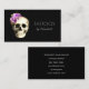 Tatuador cartão de visita profissional. Design apresenta um crânio branco acentuado com rosas roxas sobre um fundo de textura preta. Adicione seu nome e informações de contato a este cartão de visita de artista de tatuagem de na moda.