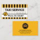 No topo está o título "SERVIÇO TAXI", com o nome da empresa logo abaixo. ; Você pode mudar as observações de legenda para o título do cargo para atender às suas necessidades de serviço. Seus detalhes de contato telefônico estão diretamente abaixo do ícone do telefone.