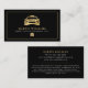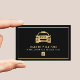 Motorista de táxi acessível moderno e elegante, cartão de visita de serviços de transporte. Design apresenta um ícone de táxi de folha de papel dourada e um ícone de deficiência em cadeira de rodas sobre um fundo preto. Personalize ainda mais com duas linhas de texto na frente e seus detalhes/serviços de contato no verso.