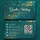 Um cartão de visita de luxo moderno, projetado para técnicos de unhas, com um fundo óptico glamouroso e brilhante com um código QR funcional para fácil reserva e compartilhamento de contatos. O elegante design combina faísca e profissionalismo, fazer ideal para artistas de unhas, profissionais de beleza, spas, técnicos de cinzas e cabeleireiros que querem um na moda e uma maneira sofisticada de exibir sua marca.