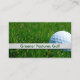 Projetado profissionalmente, modelo de cartão de negócios de tema de golfe com uma bola de golfe no capim e banner de nome da empresa em destaque na frente, juntamente com seus detalhes de contato organizados para você no verso. Basta substituir nosso texto por seu texto e você acabou de personalizar isso online. Criado para um instrutor de golfe, aulas, treinamento ou tema de campo de golfe.